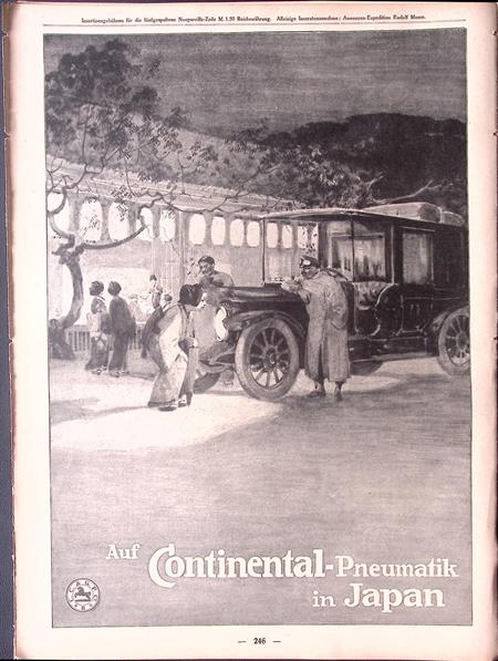 Continental reclame. Originele prent uit de Jugendstil tijd. De prent is afkomstig uit het Duitse weekblad Simplicissimus. Mode, lifestyle en licht erotische prenten werden toegevoegd in een weekblad vol spotprenten. De prent wordt geleverd in passe partout in het formaat 30x40. De vintage prent is gedrukt in 1913, midden in de Art Nouveau periode.