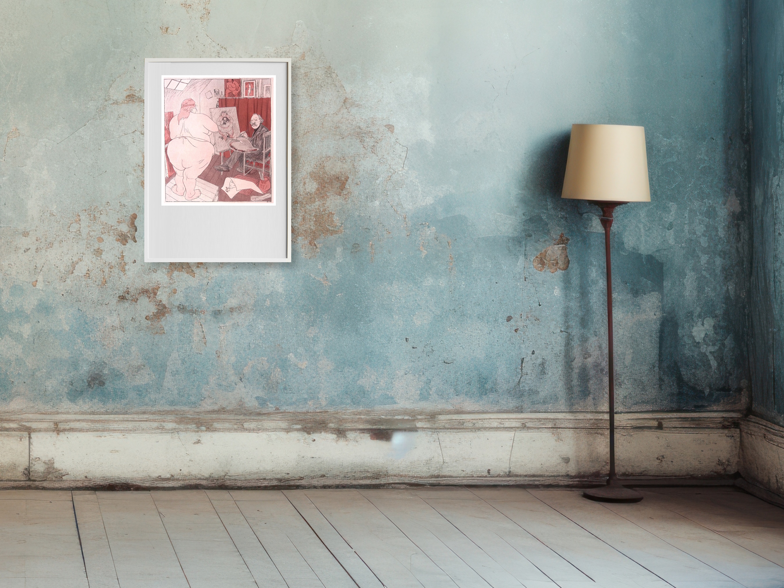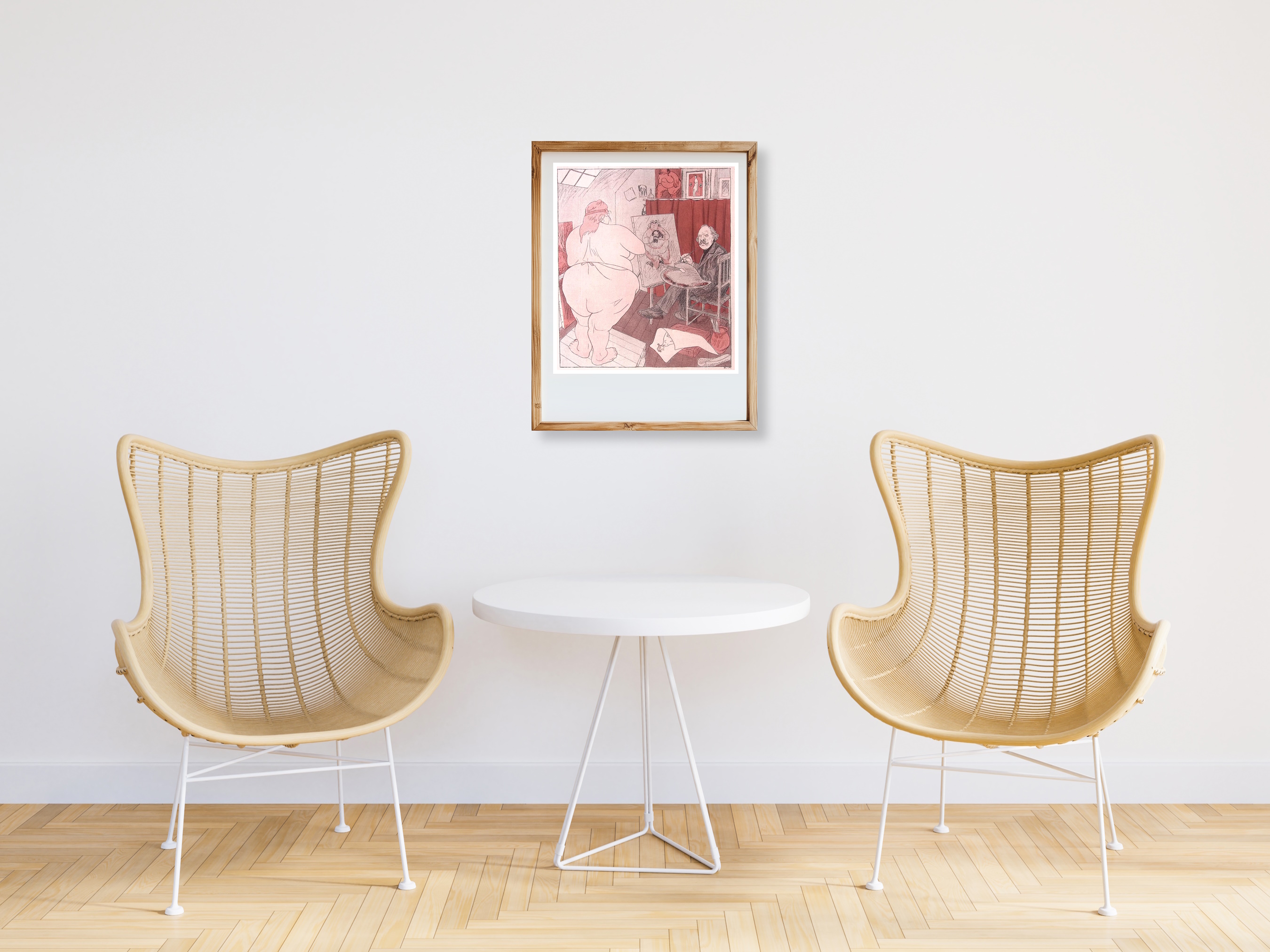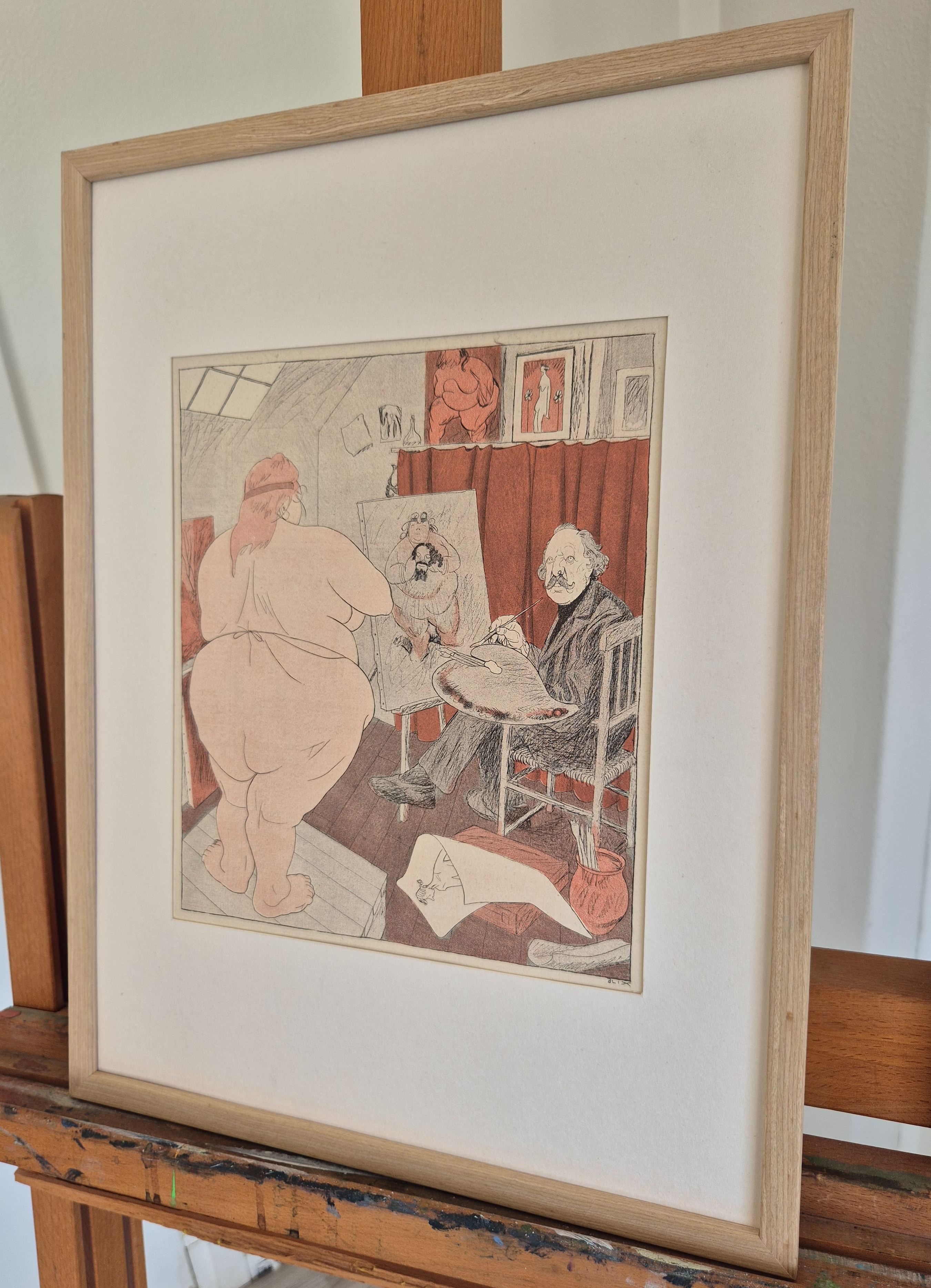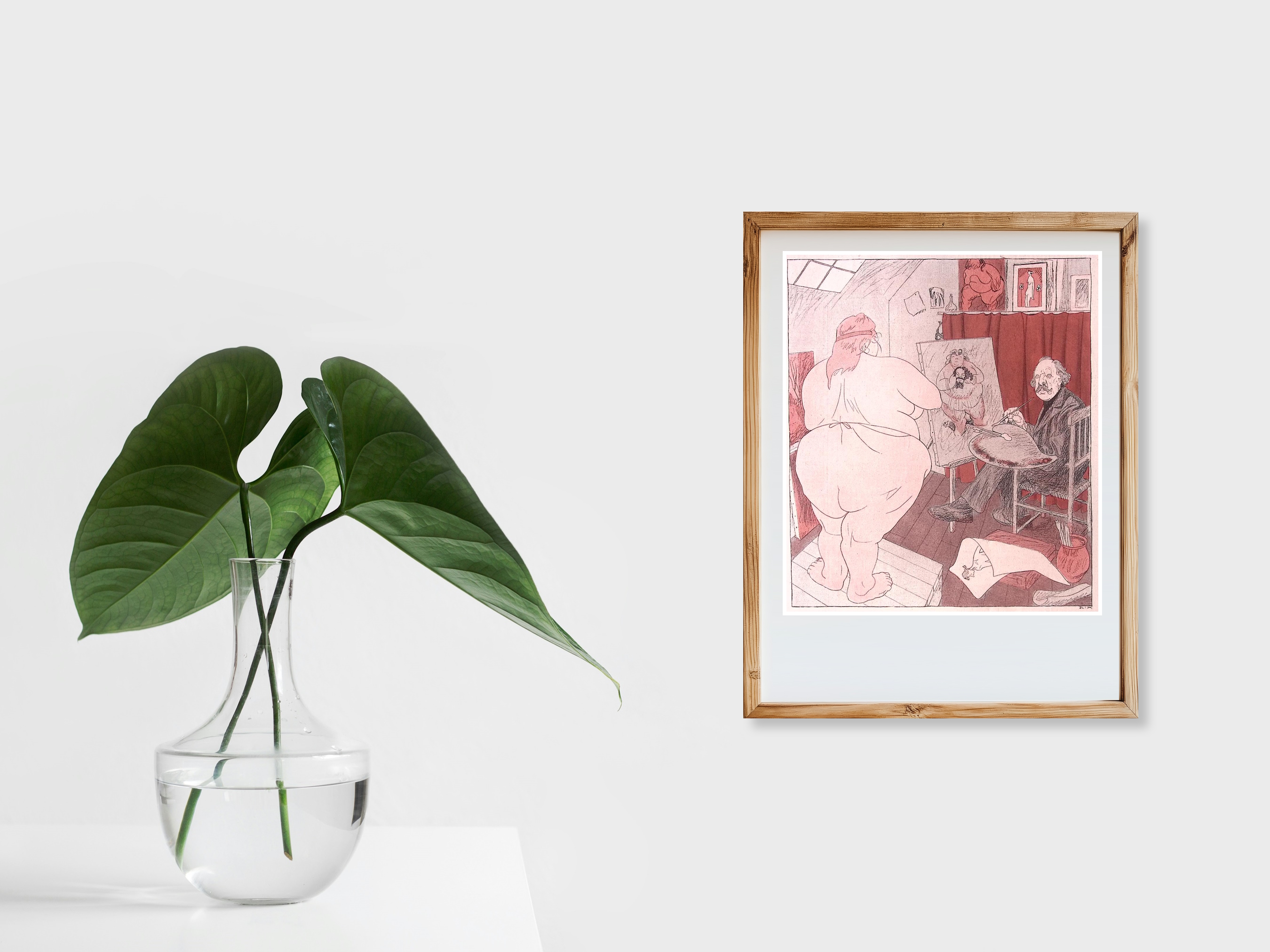 Topmodel. Bijzondere authentieke prent. Mooie inkijk in de mode en lifestyle van begin jaren 20e eeuw. Komt uit Duits weekblad Simplicissimus, waar elke week een mode, lifestyle of licht erotische prent werd afgedrukt. De prent wordt geleverd in passe partout in het formaat 30x40. Gedrukt in 1913, midden in de Art Nouveau periode. Ragnvald Blix maakte deze prent voor in weekblad Simplicissimus.