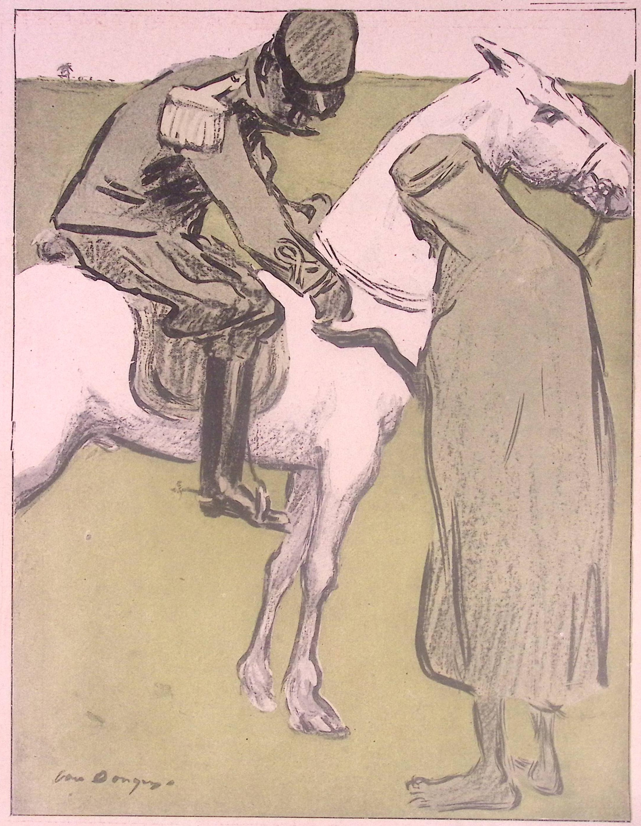 Van Dongen’s karikatuurprenten zijn satirische weergaven van mensen uit zijn tijd, vaak beroemdheden uit de Parijse kunst- en uitgaanswereld. Met vloeiende lijnen en opvallende kleuren gaf hij zijn figuren een bijna groteske uitstraling, waardoor elk portret een eigen verhaal vertelt.