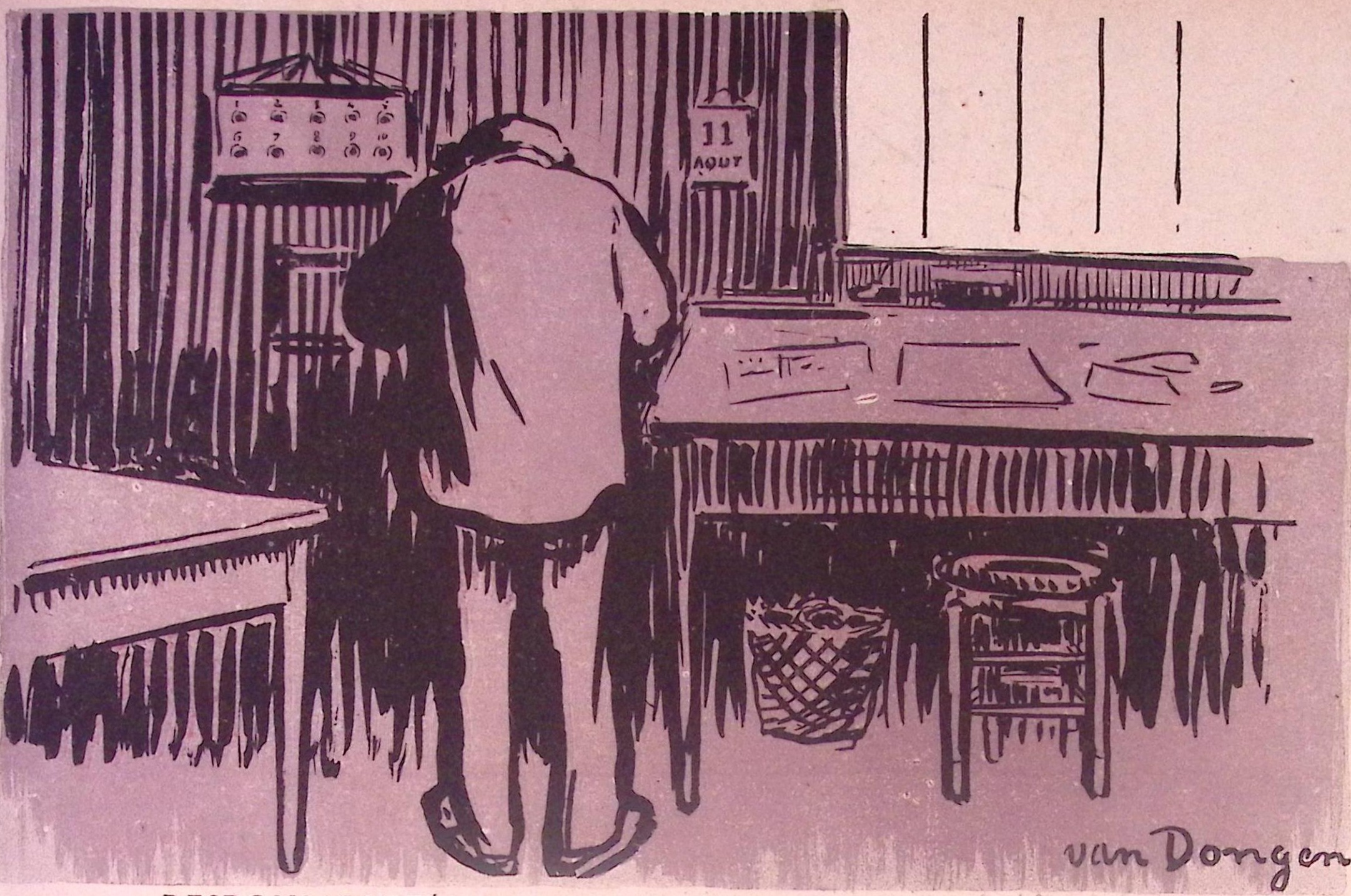 Kees van Dongen maakte levendige karikatuurprenten waarin hij mensen vaak uitvergroot en met humor afbeeldde. Zijn speelse lijnvoering en expressieve kleuren benadrukken emoties en trekken de aandacht naar opvallende gezichtsuitdrukkingen en karaktereigenschappen van zijn onderwerpen.