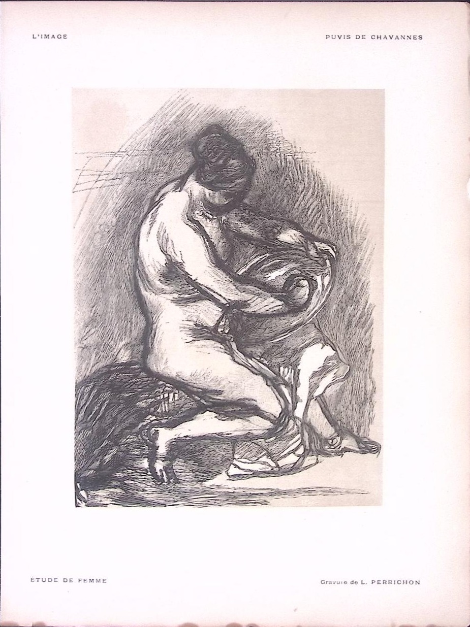 De Art Beauty prenten uit L’image combineren de elegantie van Franse art nouveau met verfijnde druktechniek. Deze houtsnedes en gravures verschenen in het begin van de 20e eeuw en tonen de esthetiek en mode van hun tijd in sierlijke lijnen en rijke details. Ze vormen een prachtig voorbeeld van hoe kunst en schoonheid samenkomen in beeldende prentkunst. Soort werk: Gravure Geïnspireerd door: Puvis de Chavannes Door: L. Perrichon .