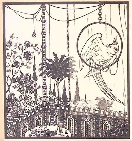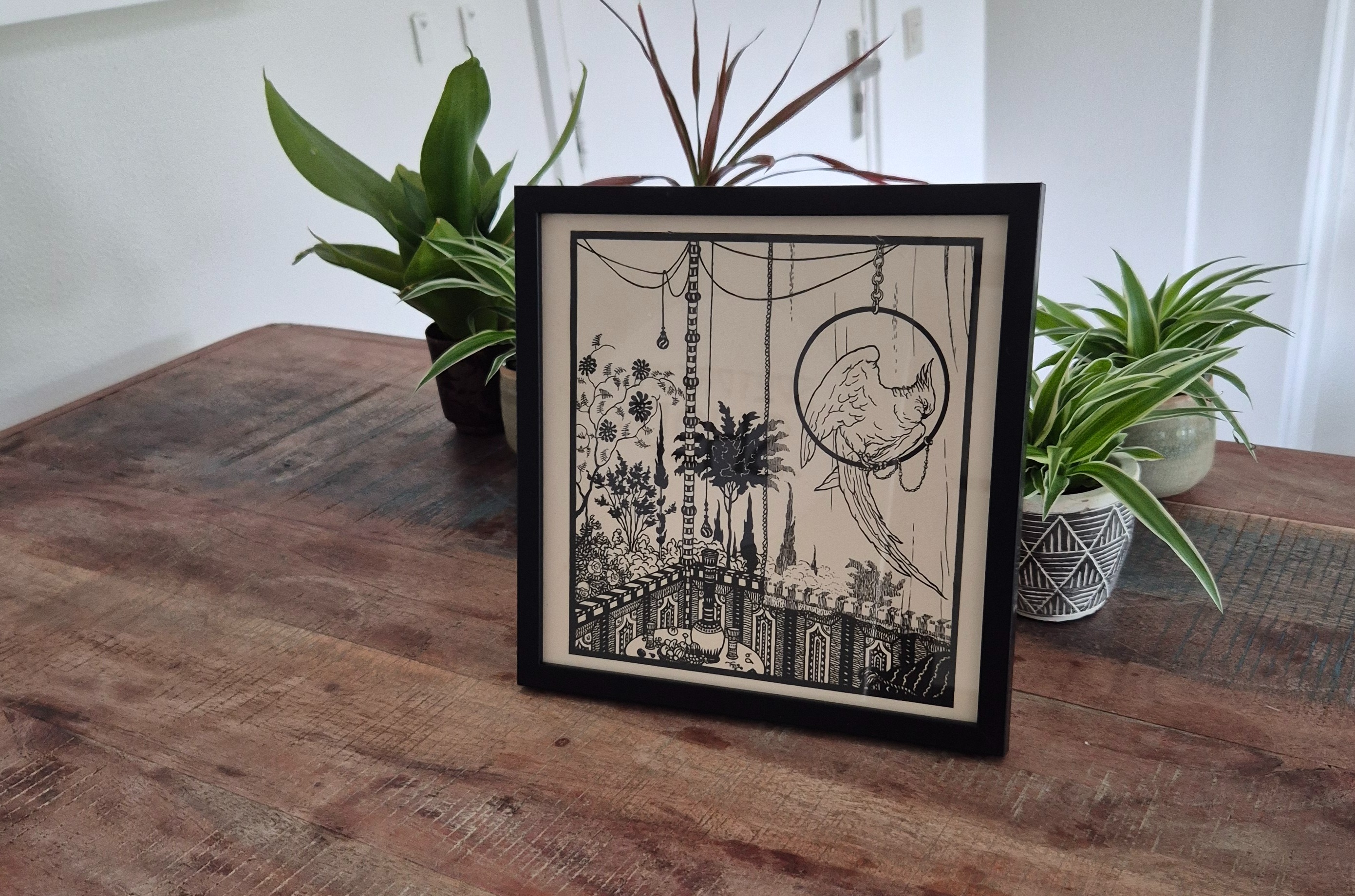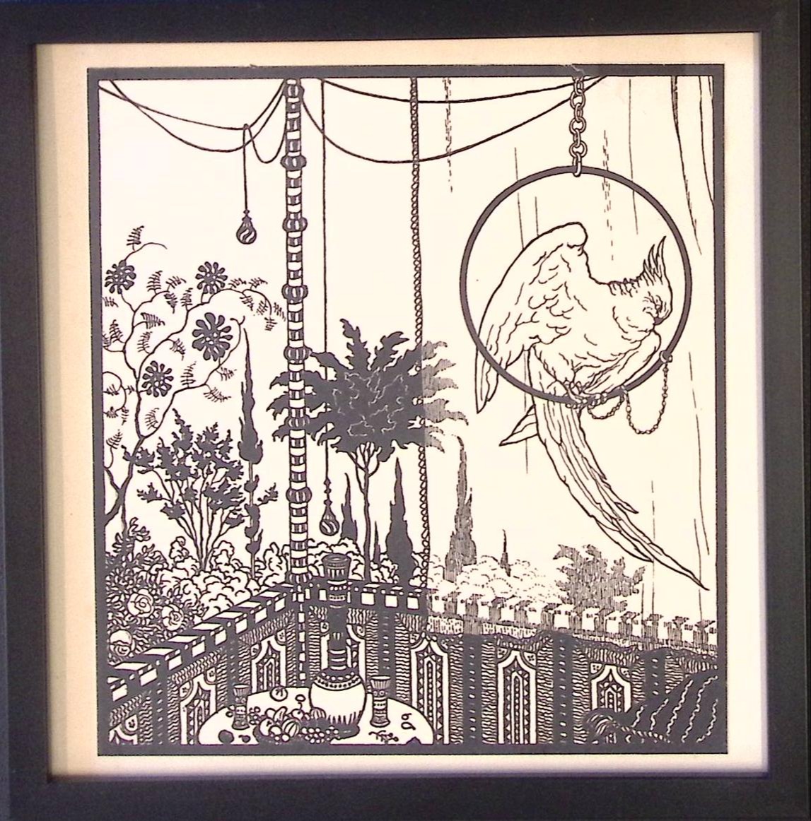 Bijzondere authentieke prent, geen herdruk! De Duitse kunstenaar Karl Thylmann vervaardigde rond 1912 de serie Gulistan: een reeks expressieve houtsneden geïnspireerd door Perzische poëzie. Wordt geleverd in vierkant lijstje.
