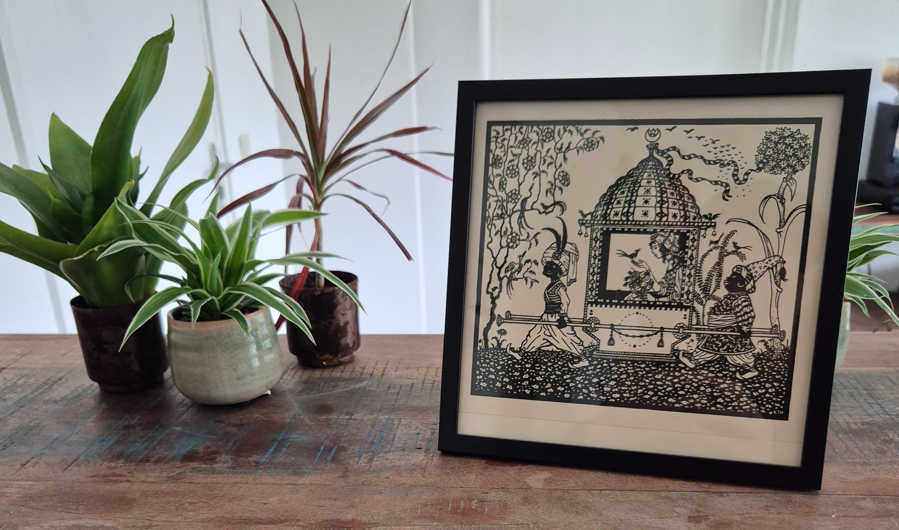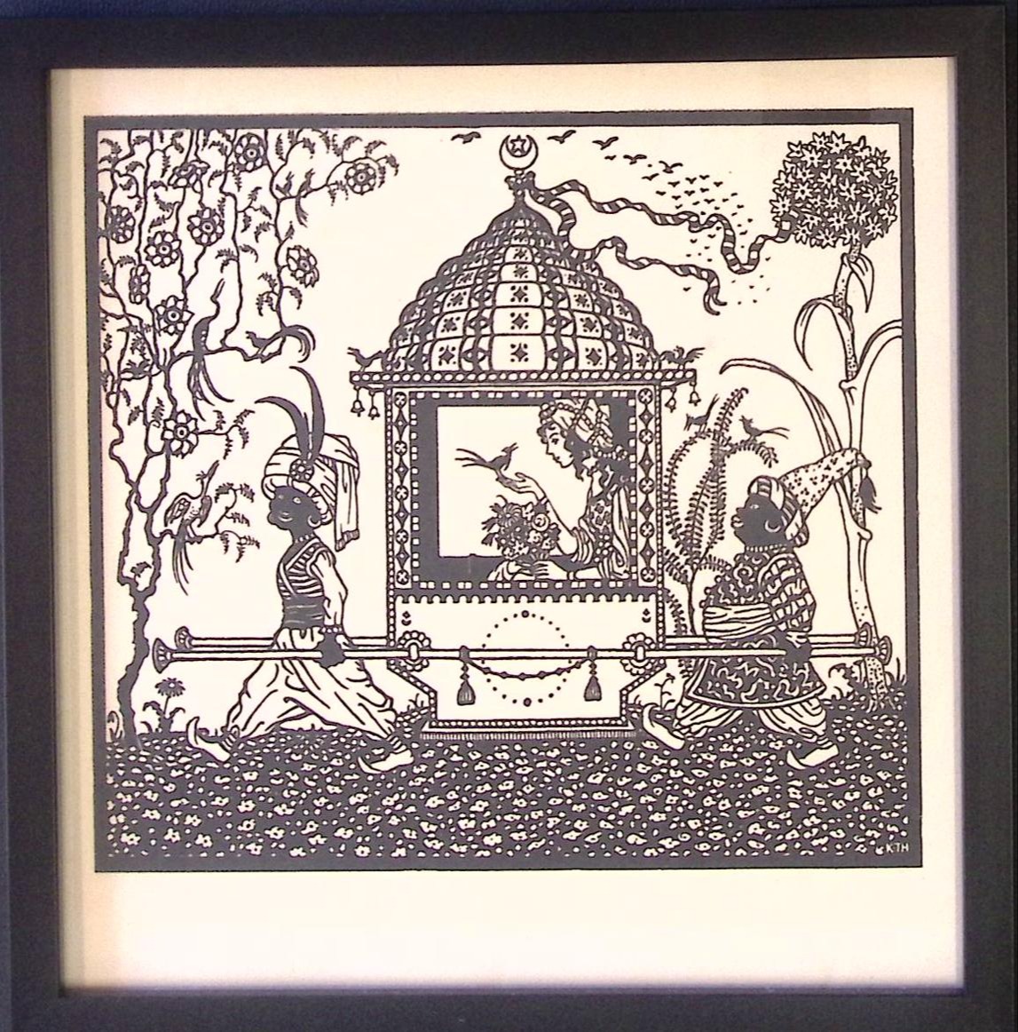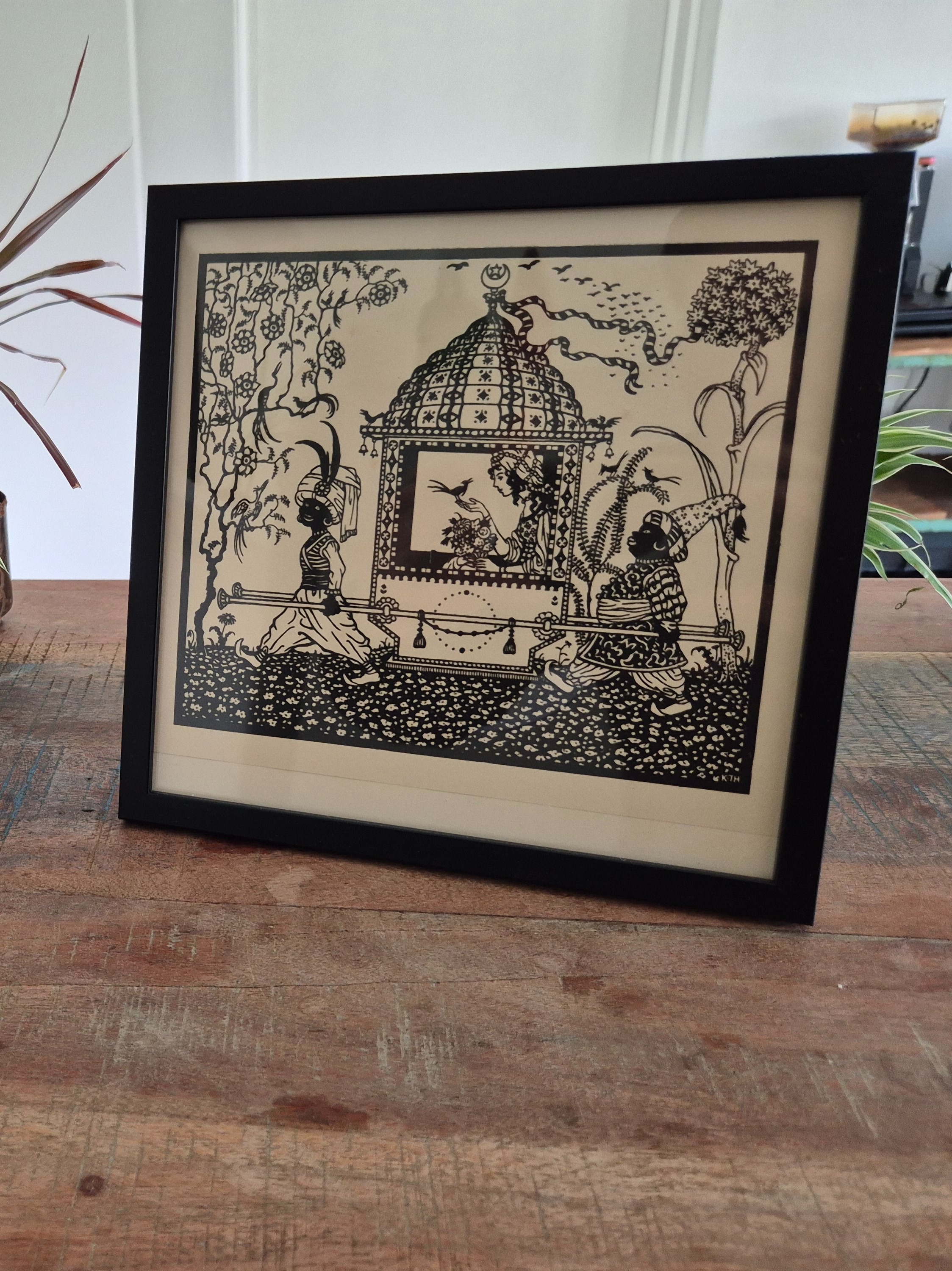 Bijzondere authentieke prent, geen herdruk! De Duitse kunstenaar Karl Thylmann vervaardigde rond 1912 de serie Gulistan: een reeks expressieve houtsneden geïnspireerd door Perzische poëzie. Wordt geleverd in vierkant lijstje.