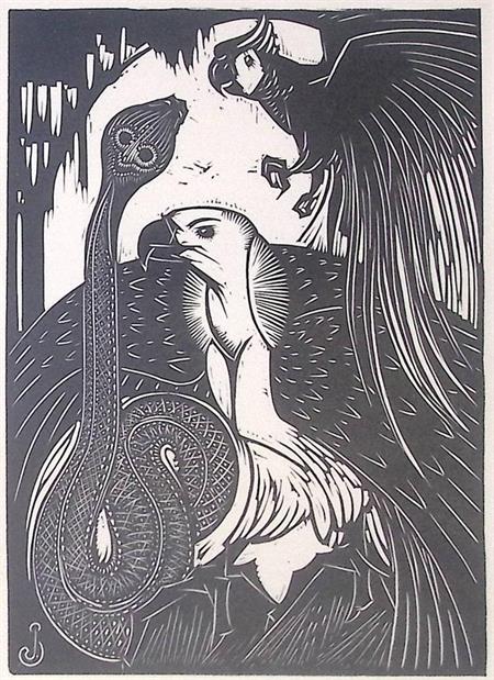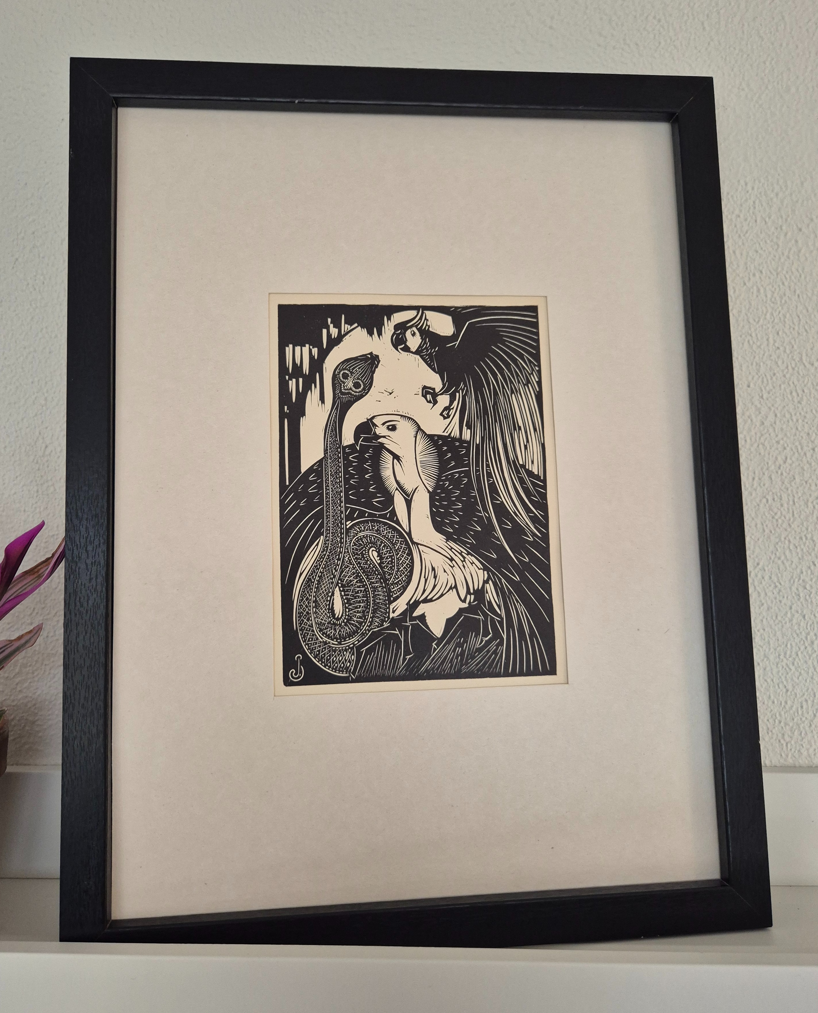 Bijzondere authentieke prent (houtsnede), geen herdruk! Komt uit het boek Misleidende Majesteit, waar dierenprenten in een verhaal verwerkt zijn Gemaakt door de bekende Nederlandse kunstenaar Jan Schonk. Wordt geleverd in passe partout in formaat 30x40.