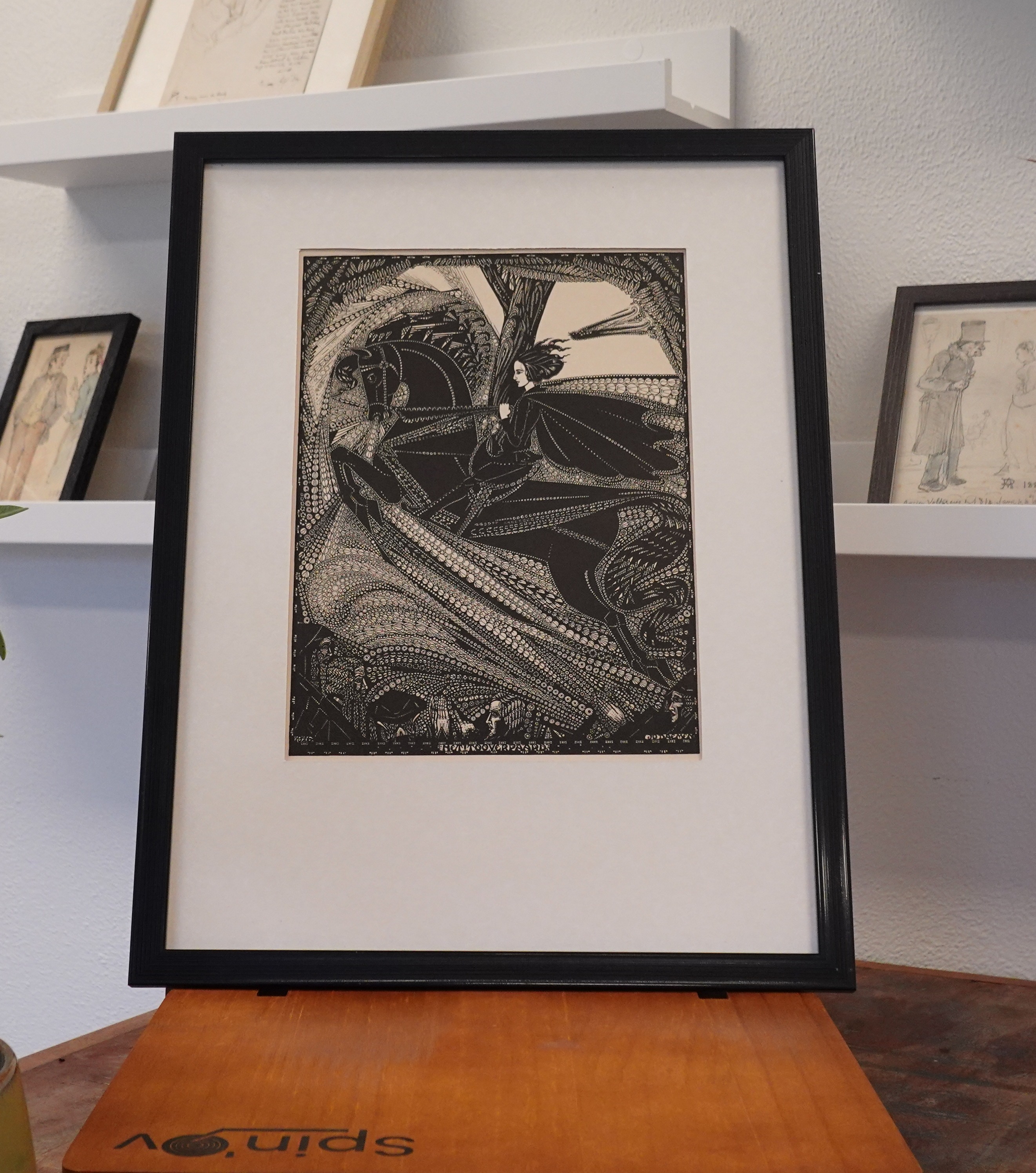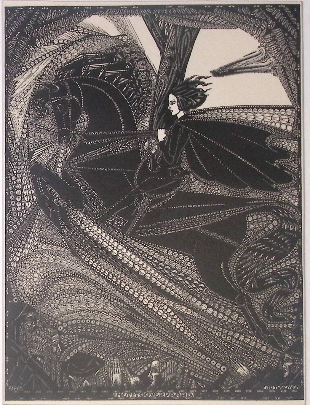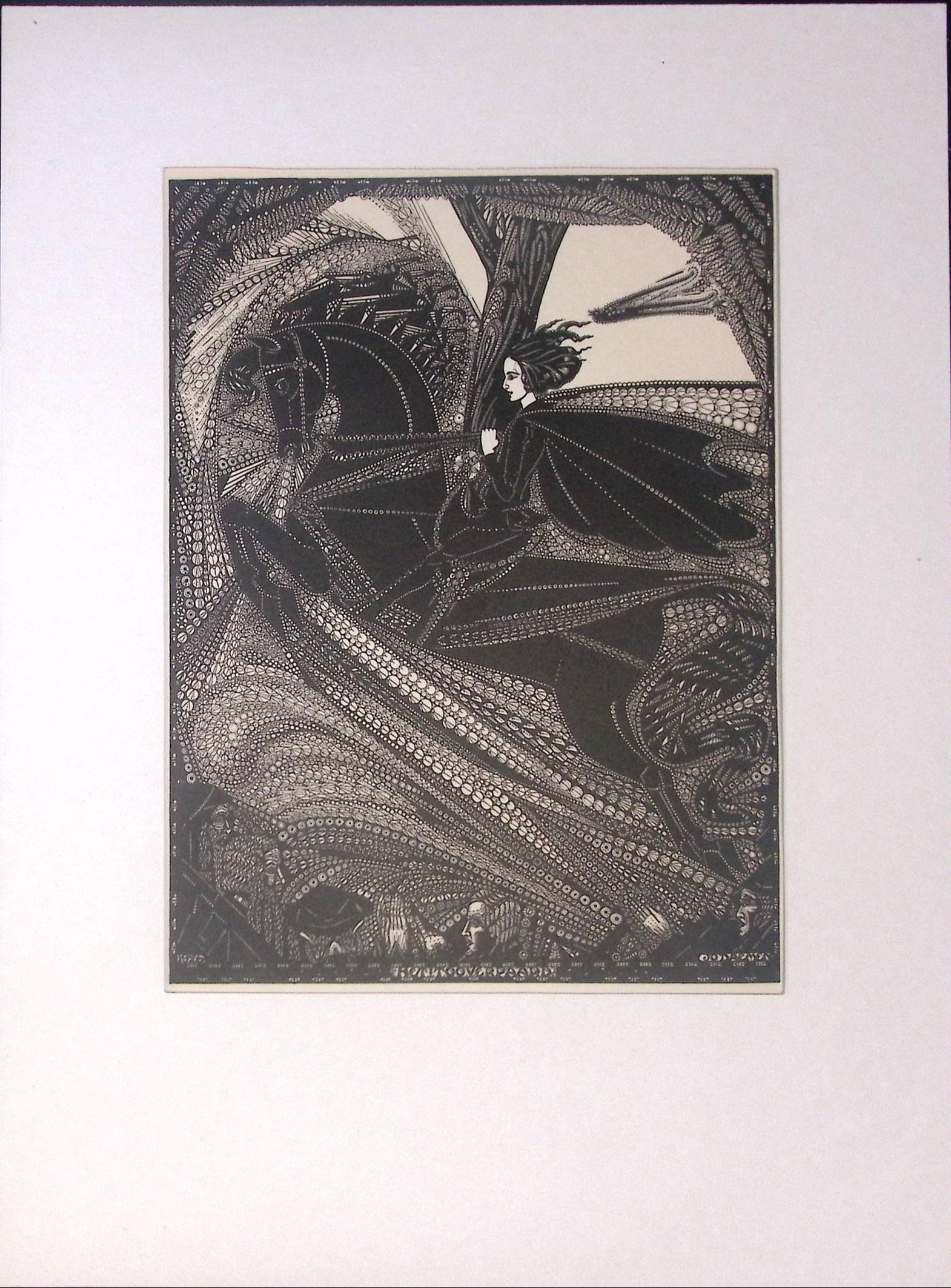 Bijzondere authentieke prent (houtsnede), geen herdruk! Komt uit het boek De heilige vlam, waar prachtige prenten in een verhaal verwerkt zijn Gemaakt door de bekende Nederlandse kunstenares Jo Daemen. Wordt geleverd in passe partout in formaat 30x40.
