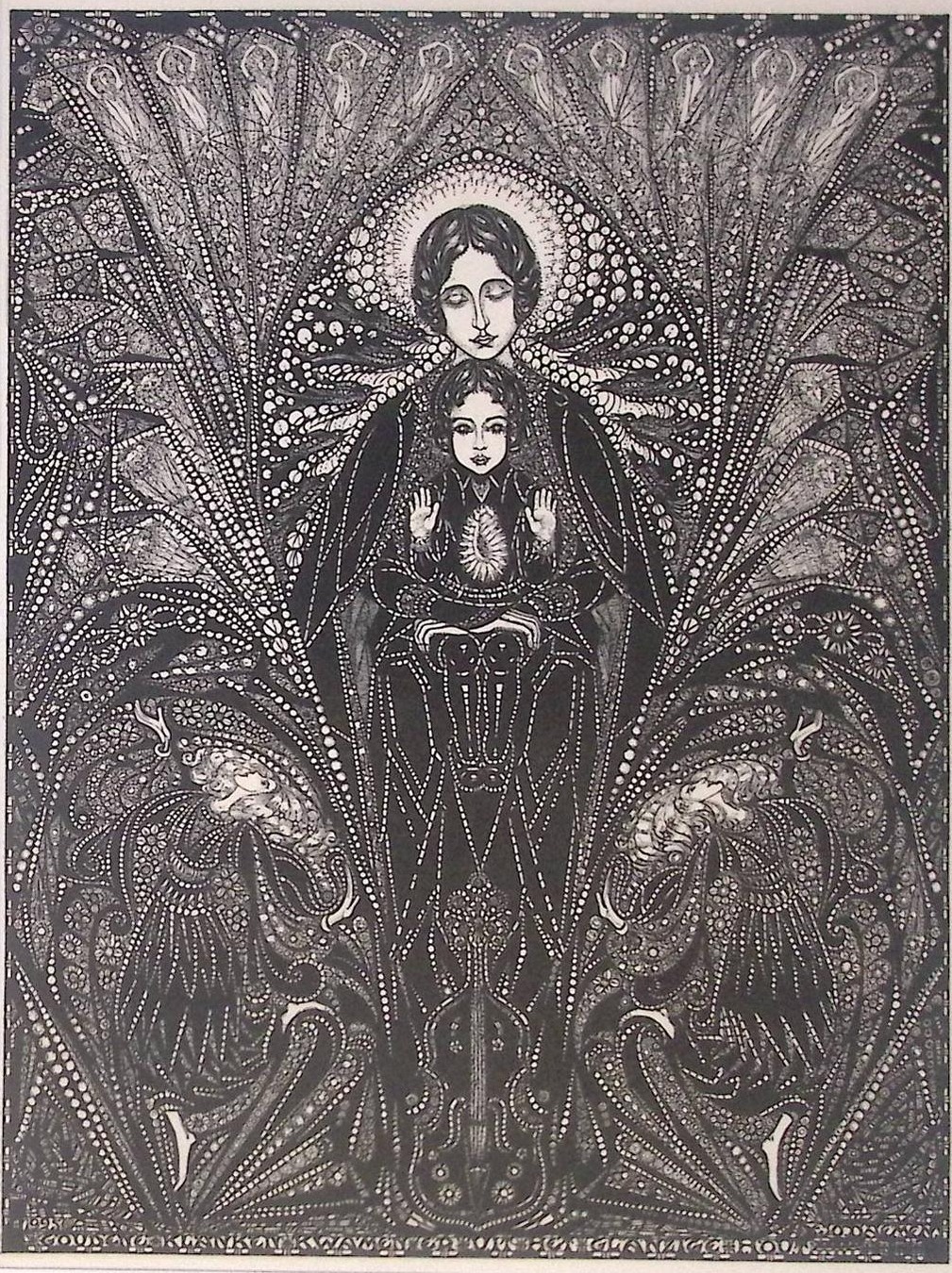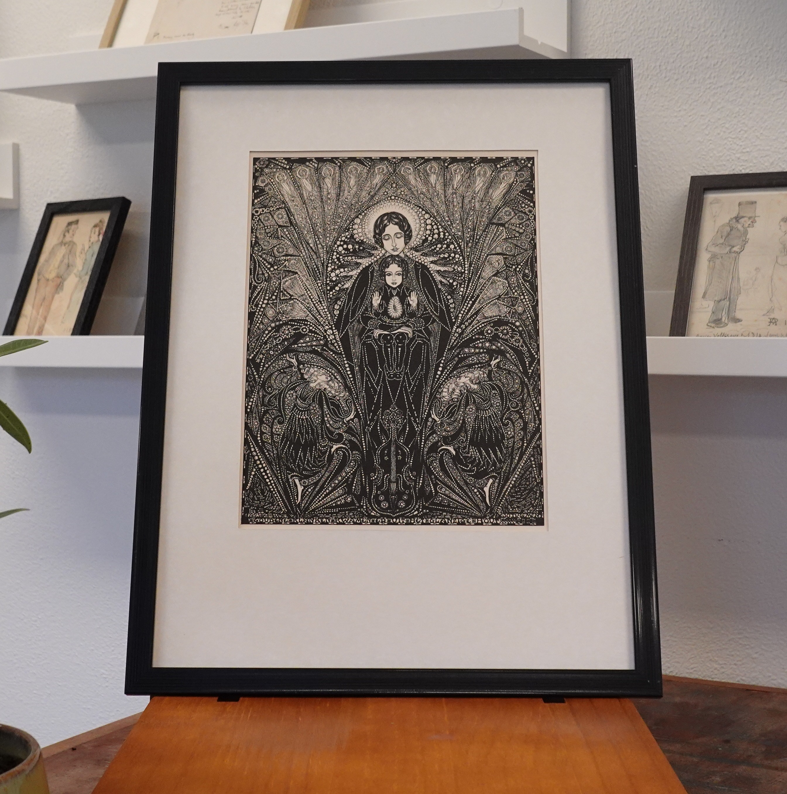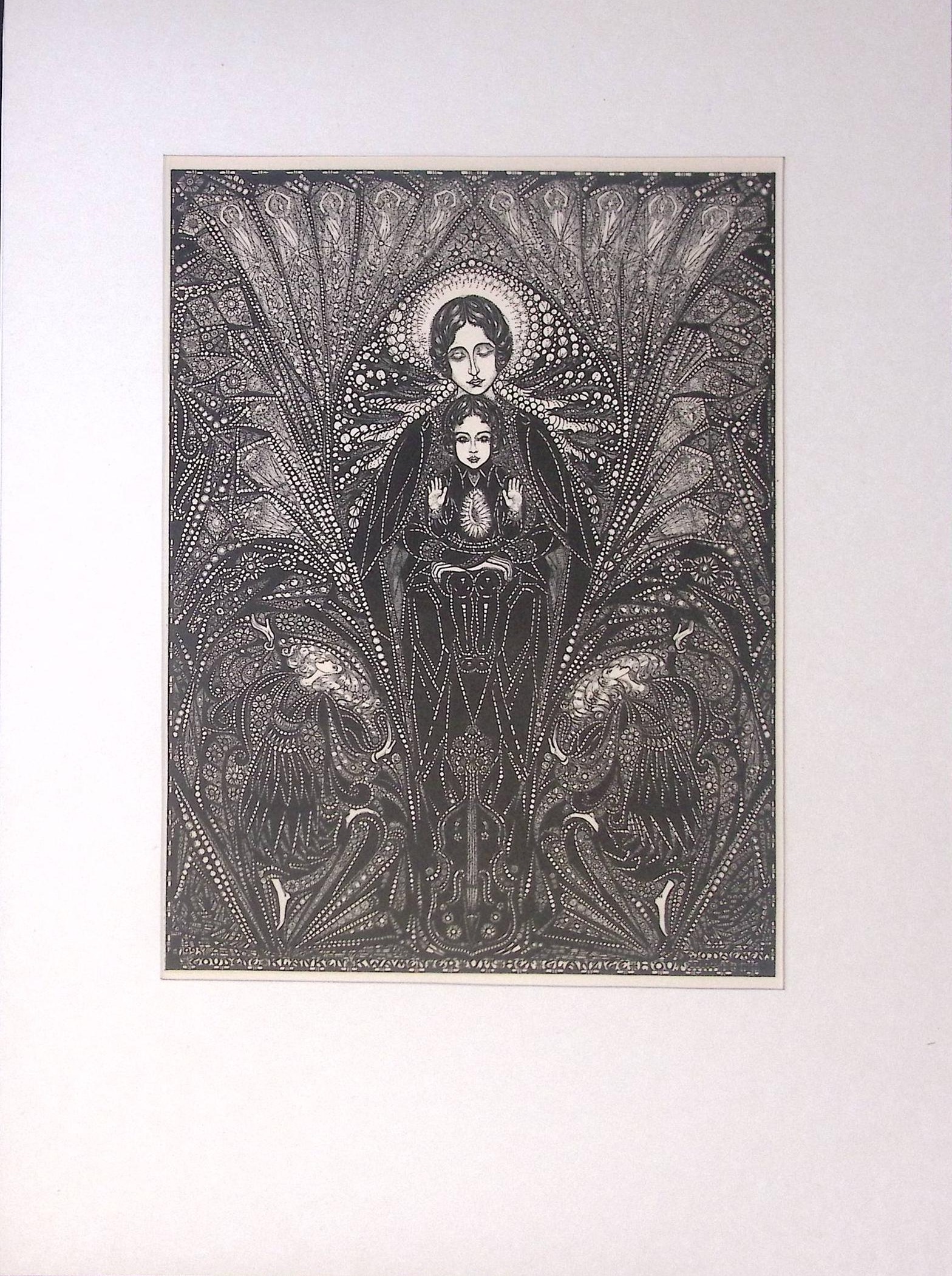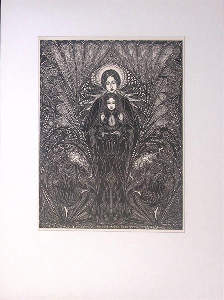 Bijzondere authentieke prent (houtsnede), geen herdruk! Komt uit het boek De heilige vlam, waar prachtige prenten in een verhaal verwerkt zijn Gemaakt door de bekende Nederlandse kunstenares Jo Daemen. Wordt geleverd in passe partout in formaat 30x40.