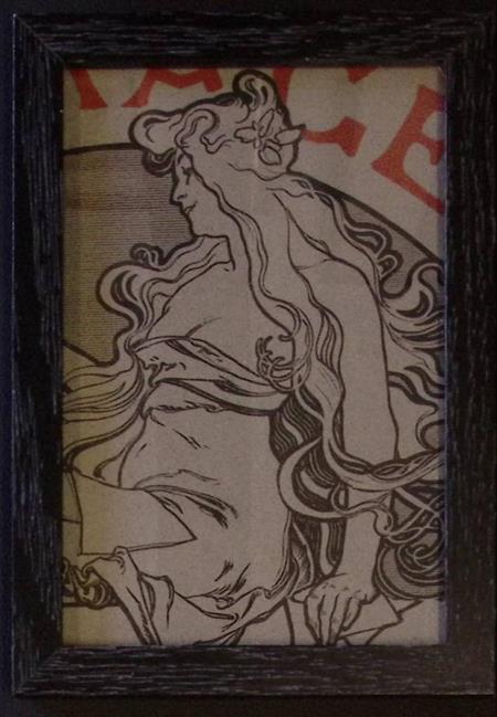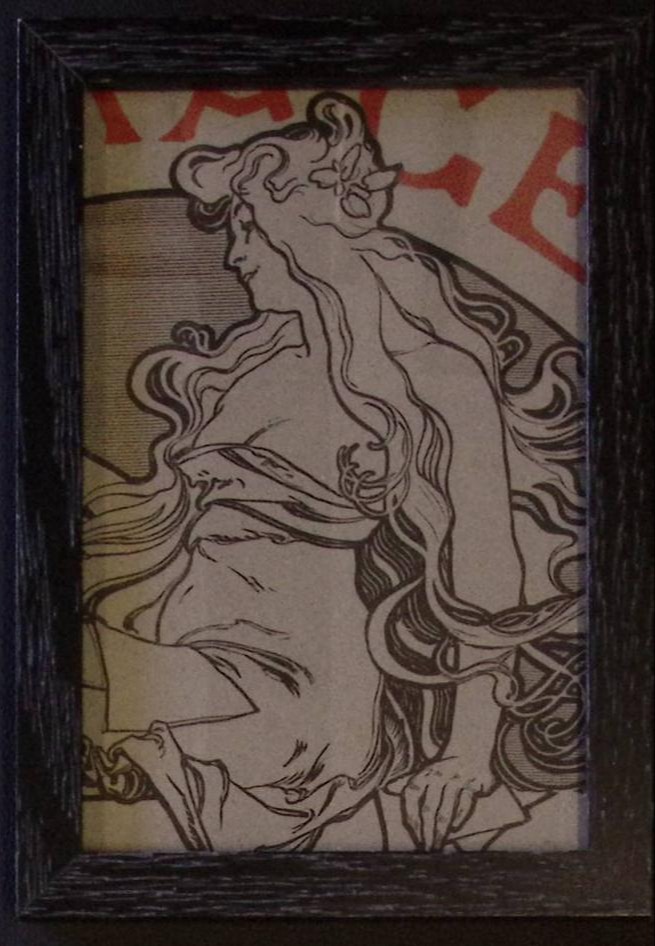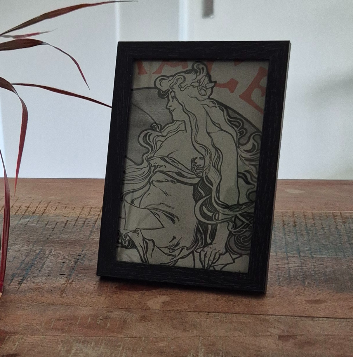 Bijzondere authentieke mini prent (houtsnede), zit in zwarte lijst, geen herdruk! Komt uit begin jaren 1900, midden in de Belle Epoque periode in Frankrijk. Mooie inkijk in de mode en lifestyle uit die tijd. Komt uit Franse weekblad L'Image, waar elke week een mode, lifestyle en sierlijke prenten werden afgedrukt.
