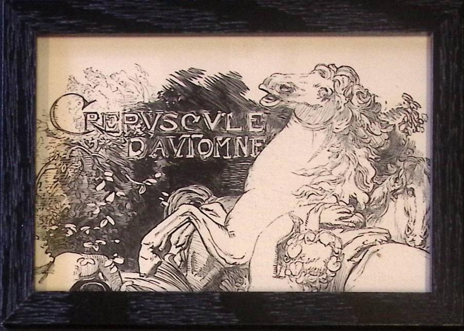 Bijzondere authentieke mini prent (houtsnede), zit in zwarte lijst, geen herdruk! Komt uit begin jaren 1900, midden in de Belle Epoque periode in Frankrijk. Mooie inkijk in de mode en lifestyle uit die tijd. Komt uit Franse weekblad L'Image, waar elke week een mode, lifestyle en sierlijke prenten werden afgedrukt.