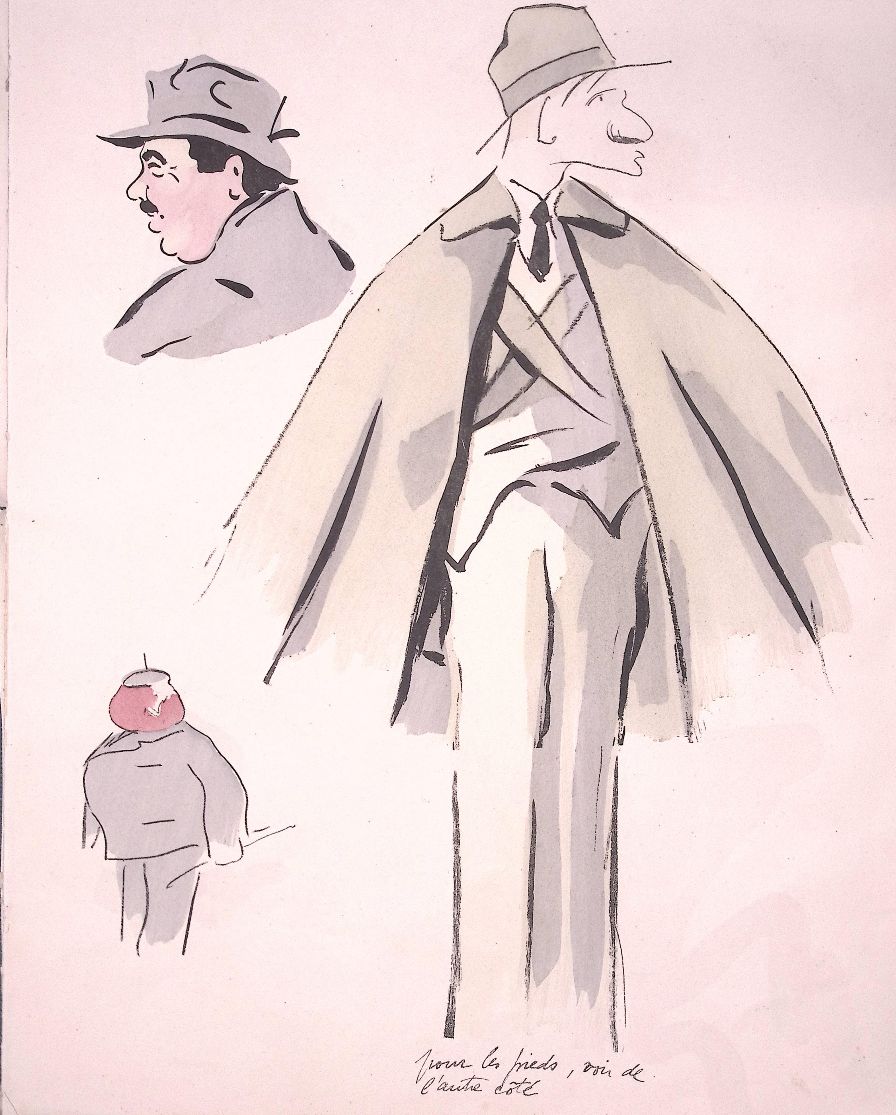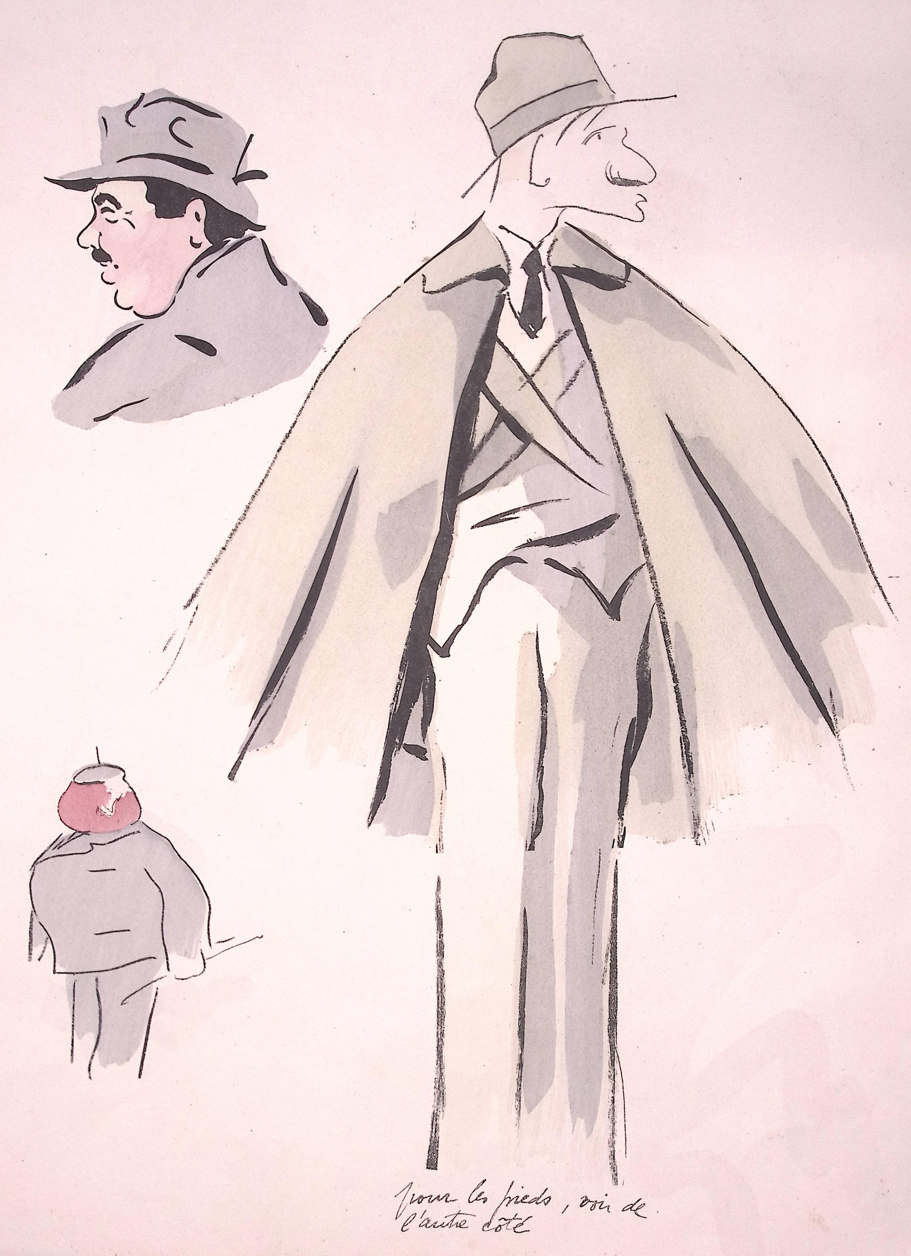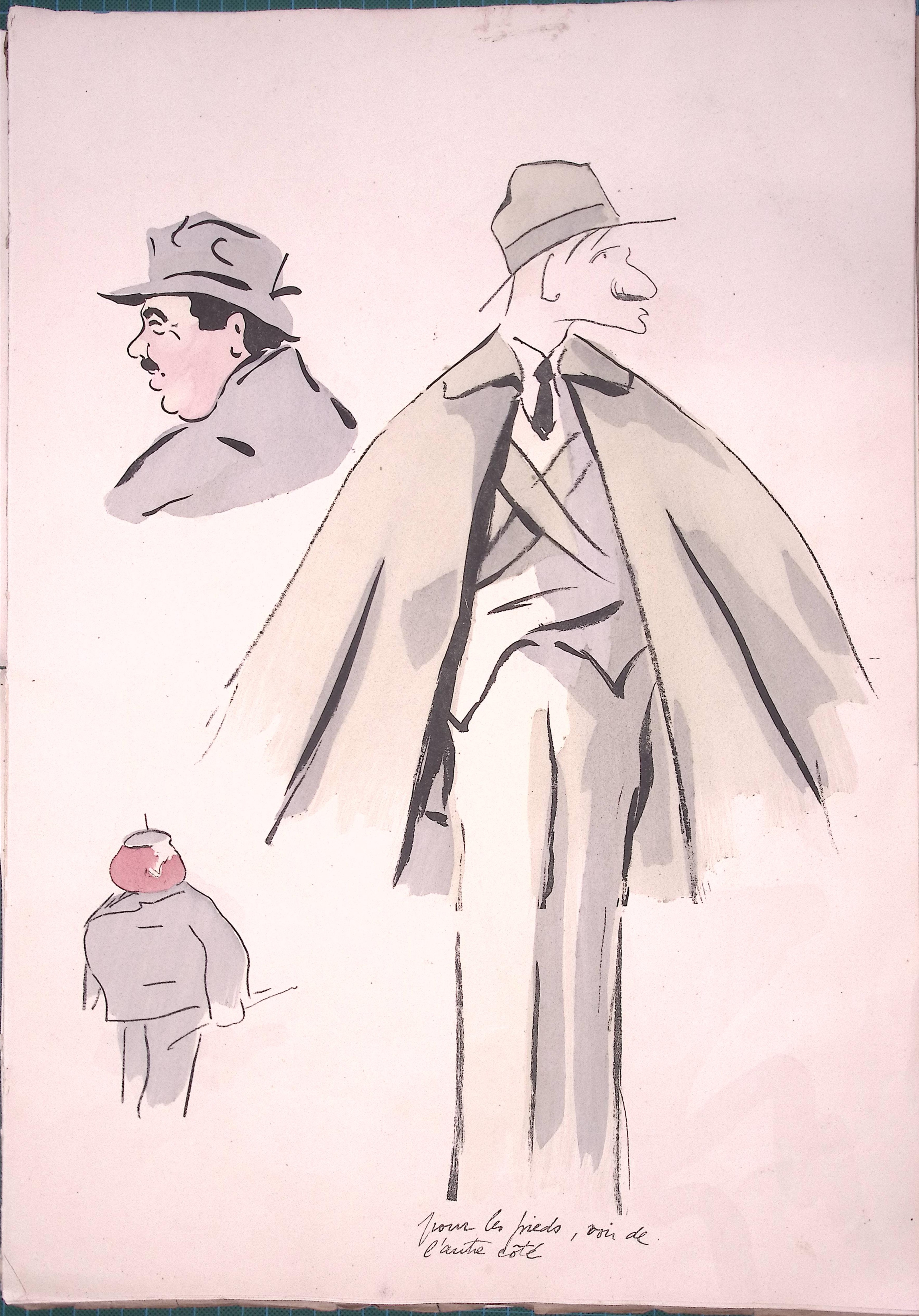3 scheten - man in cape en homburg hoeden en grijze man.