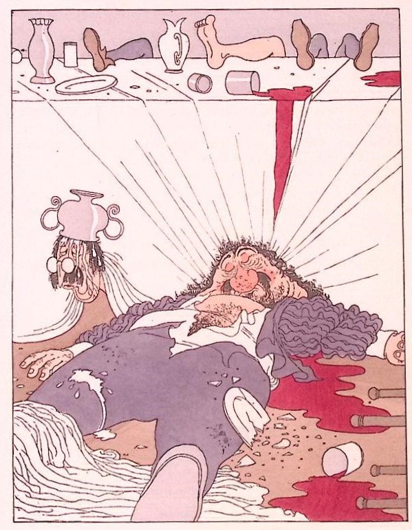 Een tegenslag aan tafel - bloed en wijn.